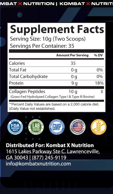 Kombat X Collagen is built to support the parts of your body that take the most impact—your tendons, skin, and hair. Formulated for those who put their bodies through stress day after day, collagen helps you recover stronger, stay mobile, and look as sharp as you feel.