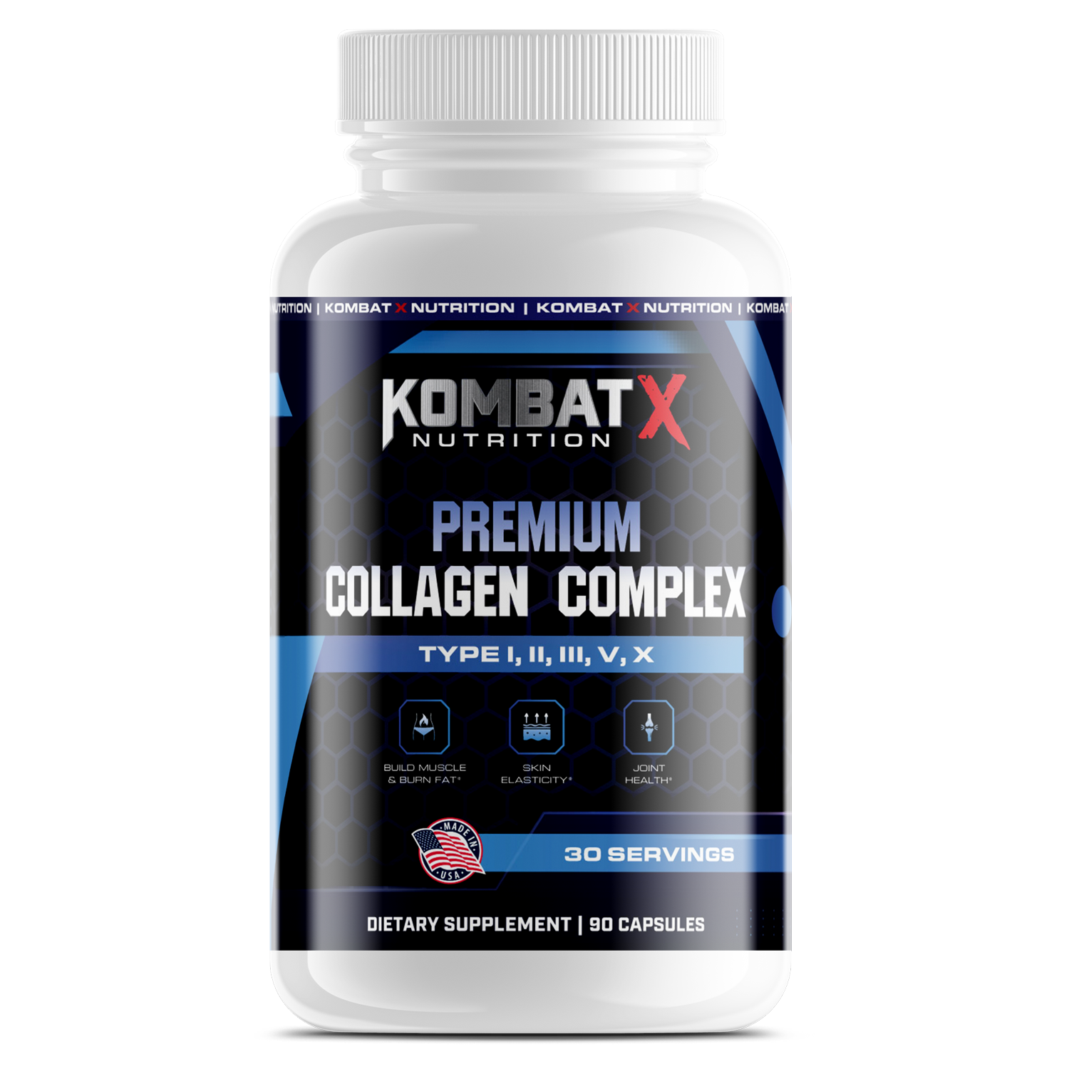 Kombat X Premium Collagen Complex delivers a powerhouse blend of five collagen sources—bovine, chicken, marine, eggshell, and avian sternum—providing complete coverage for joints, bones, skin, and connective tissue. This advanced formula reinforces your foundation, keeps you moving strong, and supports recovery inside and out.