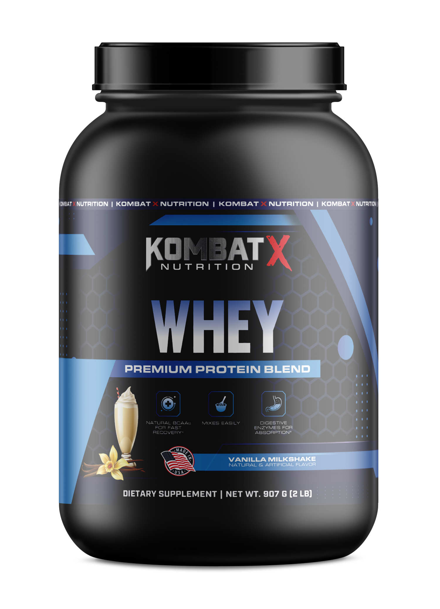 Kombat X Whey Protein is a complete muscle-fueling formula that delivers 25g of protein per scoop with a naturally balanced blend of carbs, fats, and essential minerals. Enhanced with BCAAs and digestive enzymes, this protein powder supports recovery, strength, and lean muscle—making it the perfect choice for everyday performance.